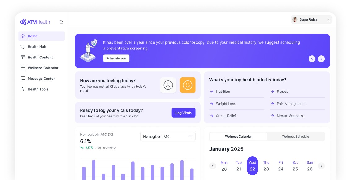By consolidating all aspects of health into a single, easy-to-use app, ATM Health eliminates fragmented access to health information. We return human-readable, structured documentation to providers and personalized health information, reminders, and recommendations to patients.